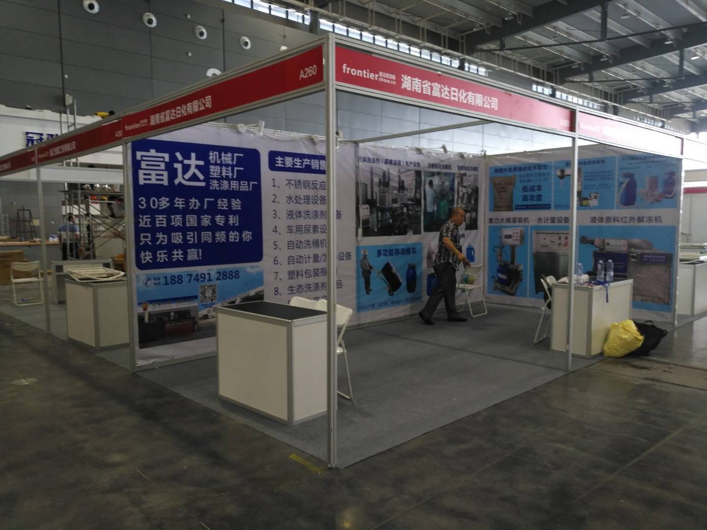 富達日化受邀參加本次國際日用貨展覽會,參展區號為:A260,參展的主要產品為:日用洗滌劑生產設備,洗滌劑(生態果蔬洗潔精、生態凈生物分解洗衣液),灌裝機,化工原料大桶移動推車,塑料包裝瓶(洗潔精瓶子)等......歡迎新老用戶到參展區參觀!