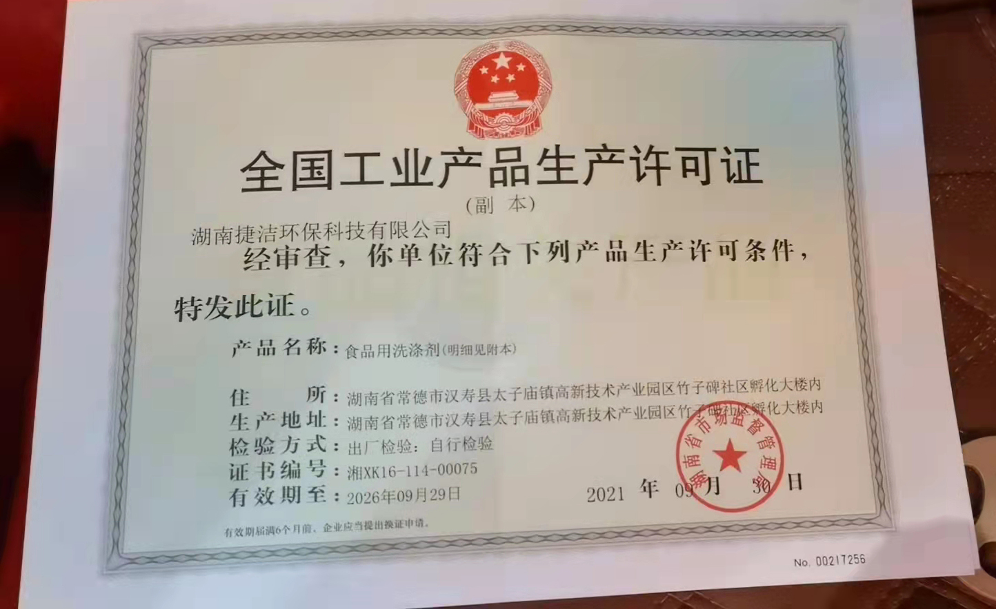 祝賀常德環保科技取得洗潔精全國工業產品生產許可證!