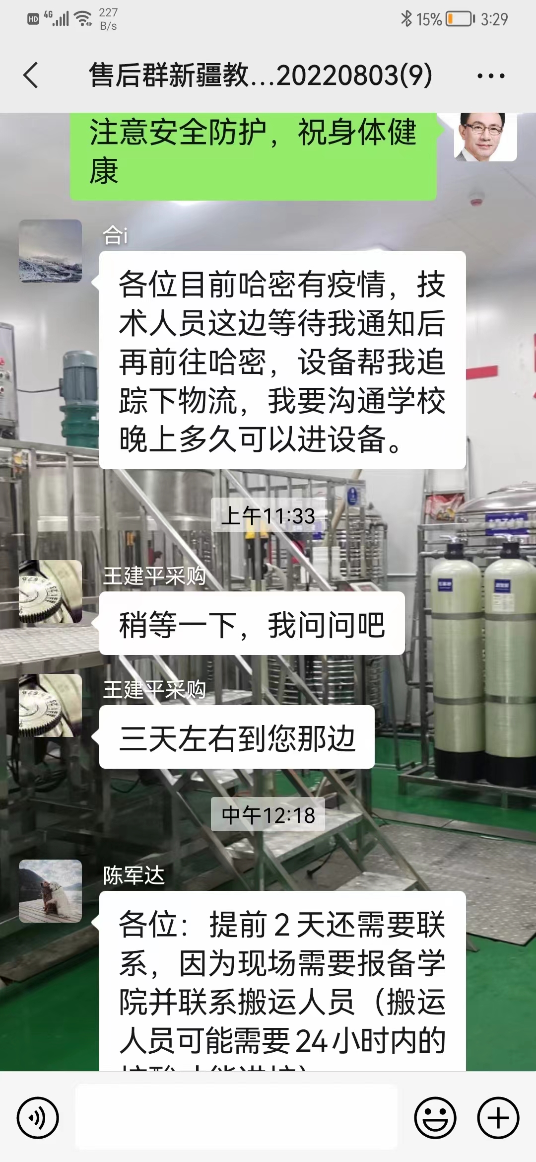 好事多磨,發(fā)往新疆大學(xué)系列日化設(shè)備因?yàn)橐咔闊o法正常安裝,期待疫情早日遠(yuǎn)去!
