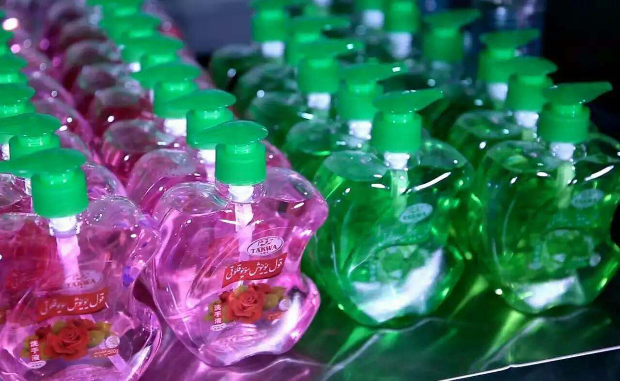 幾年的時間,新疆伊寧客戶建成標準化實驗室、一定規模生產車間,實現標準化作業流水流程。與此同時,富達日化提供的一體多機的液體洗滌設備生產出品質一流的洗潔精、洗衣液、洗手液,讓伊寧客戶迅速開拓市場。