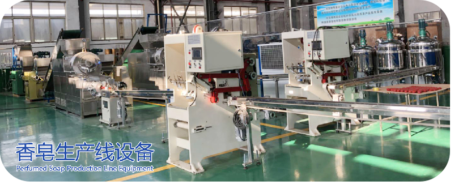 原料攪拌機;三輥研磨機;半成品輸送機;香皂冷凍機;真空出條機;真空泵;切塊機;香皂打印機;成品輸送機 ; 不銹鋼工作臺 |