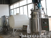 4)工作效率:比傳統的洗潔精設備生產效率提高了一倍。若傳統的洗潔精設備生產1噸成品需要1個小時,富達日化系洗潔精設備只需要0.5個小時即可。